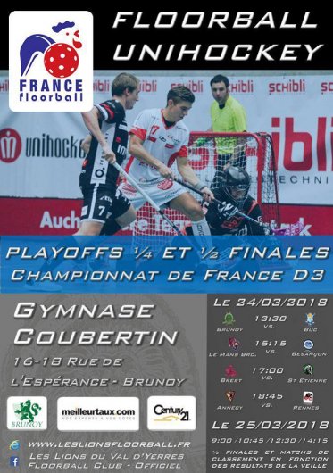 13H30 : Brunoy VS Buc 15H15 : Le Mans / Bordeaux VS Besançon 2 17H00 : Brest VS Saint Etienne / Gap 18H45 : Annecy 2 VS Rennes